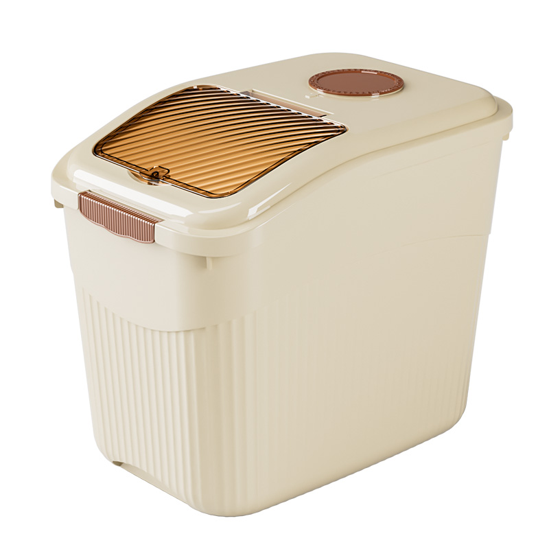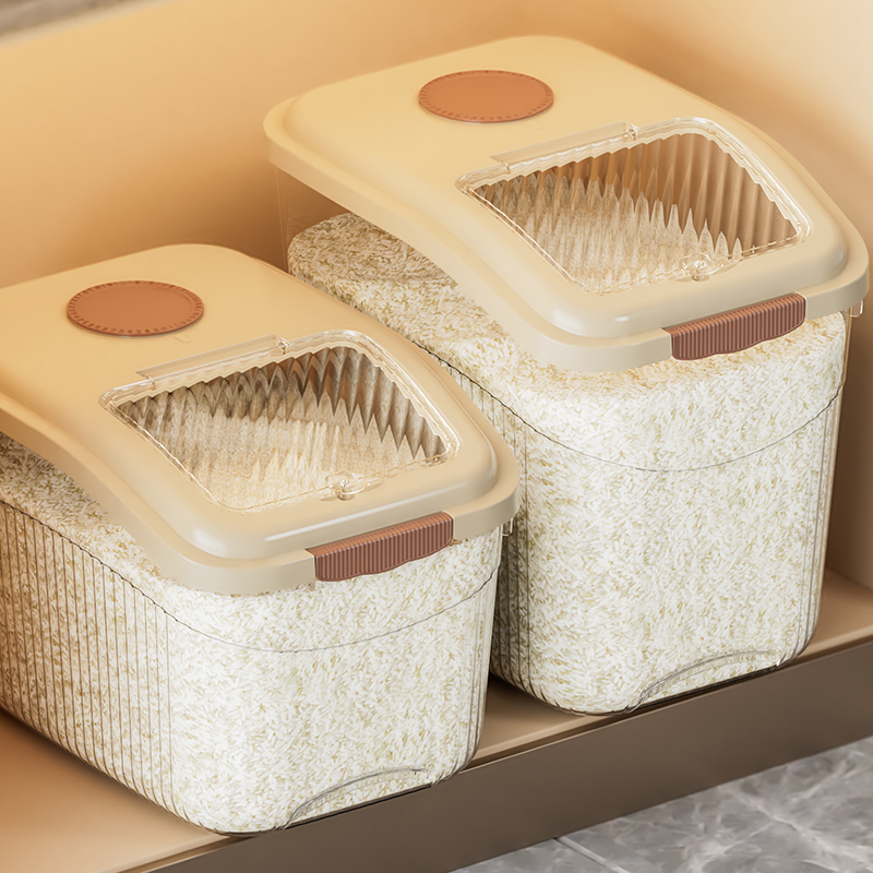 金币8.87!!防虫米桶!透明奶油【20斤装】送米杯*1!采用食品级材质,安全健康,专为家庭米面存储设计。密封结构有效防潮、防虫,保持食材新鲜干燥。2025新款升级桶身,搭配人性化提手与扣盖设计