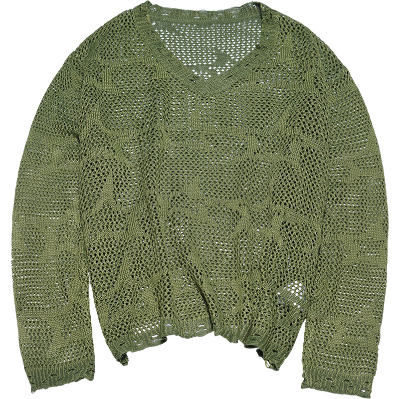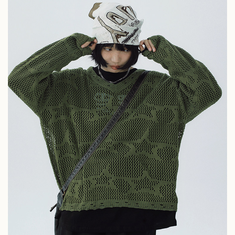 您的位置: STILLYOU原创美式星星镂空破洞V领长袖针织衫女慵懒轻薄罩衫春秋