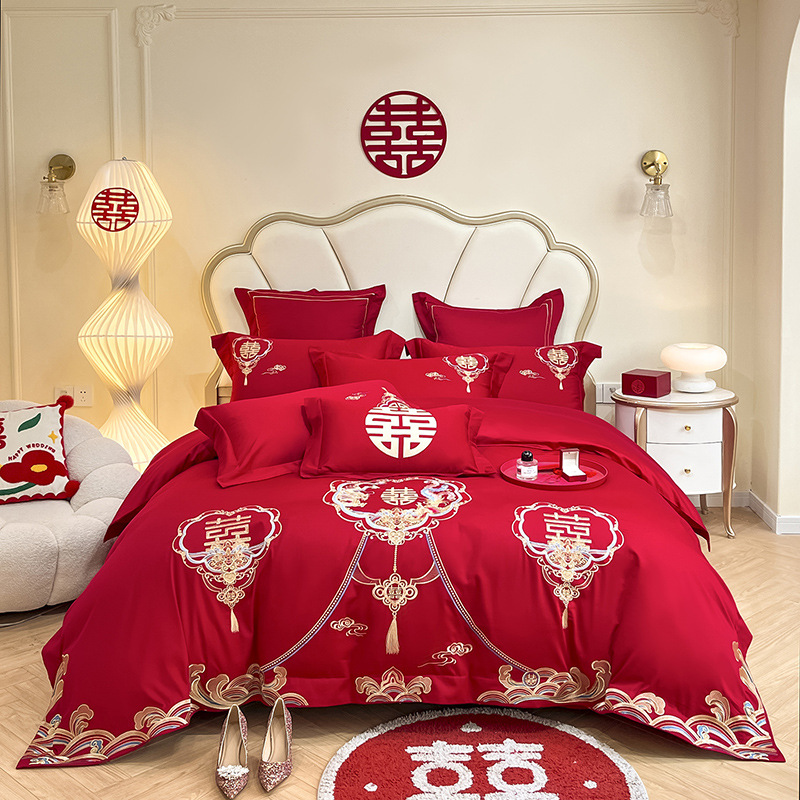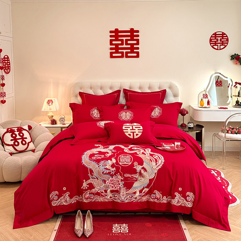亲肤棉磨毛裹住暖意,刺绣缀满新婚浪漫。婚庆专属配色超吸睛,套件齐全省心搭配。柔软贴身好睡眠,新婚卧室氛围感拉满!