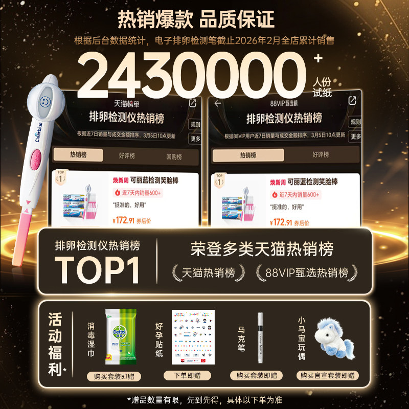 淘宝天猫可丽蓝/Clearblue电子排卵试纸高精度测排卵检测仪笑脸棒17支装优惠券折扣价格–彩云间
