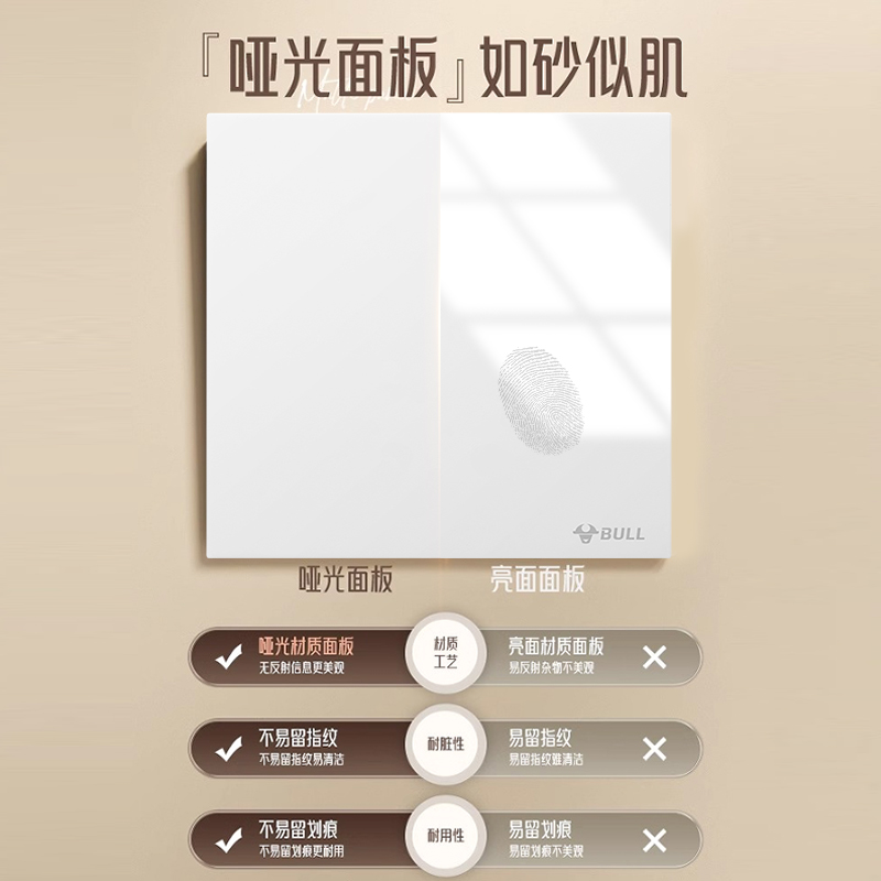 公牛蝶翼超薄开关面板插座五孔墙壁家用G560奶油风哑光G57暮雪白