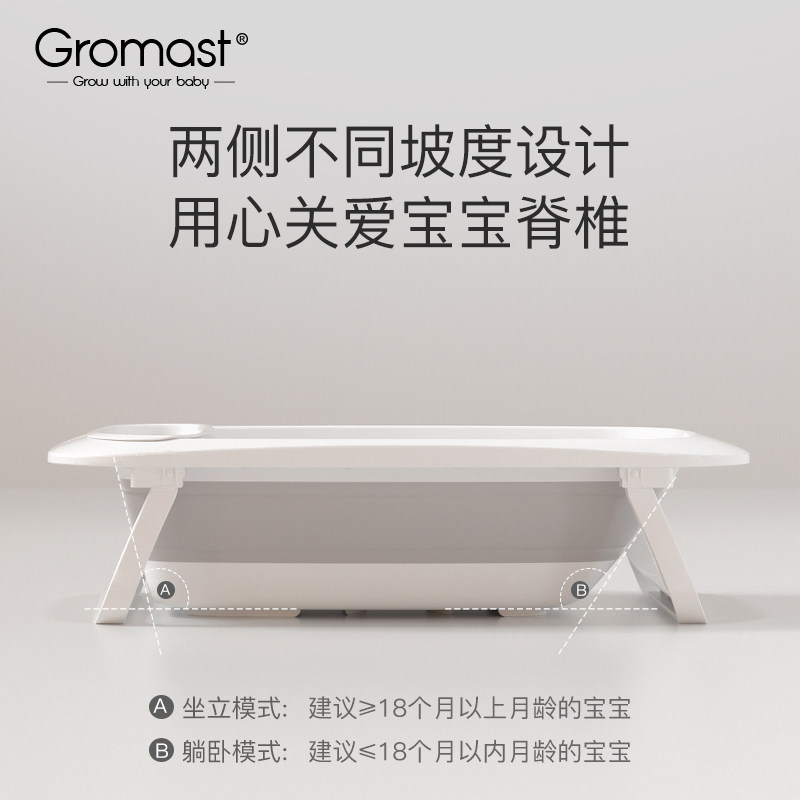 Gromast婴儿洗澡盆宝宝折叠浴盆可坐躺大号浴桶家用新生儿童小孩