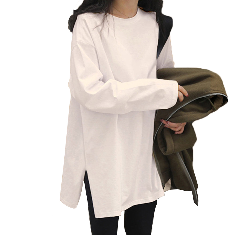 您的位置: one more白色纯棉长袖t恤女款秋冬内搭单穿配鲨鱼裤遮屁股打底衫S
