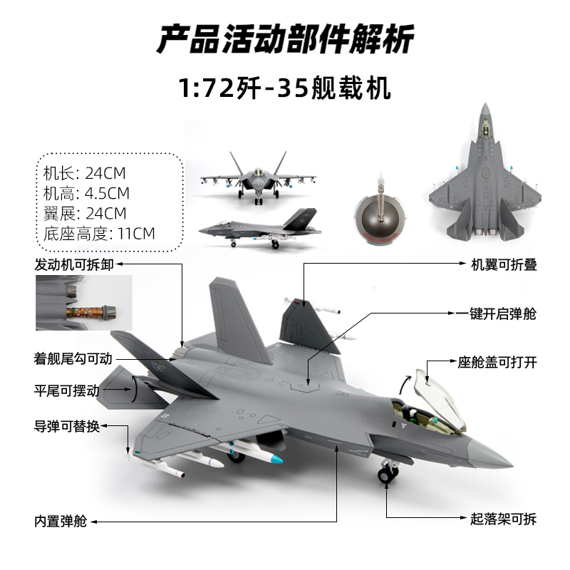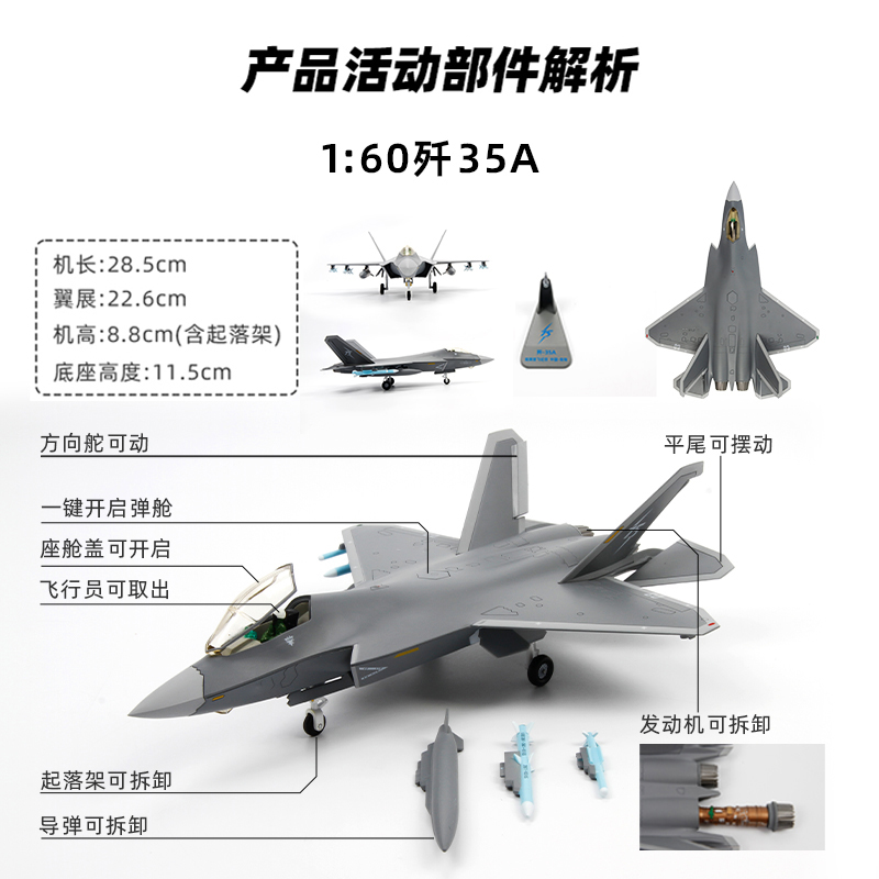 中航工业特尔博歼35飞机模型仿真合金可动歼35a战斗机歼-35舰载机