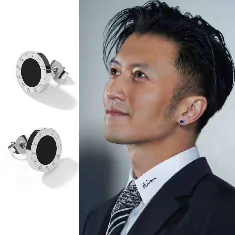 淘宝天猫合金耳饰 【轻奢好物】耳钉男罗马字母黑贝圆形耳饰轻奢百搭耳环�优惠券折扣价格–彩云间