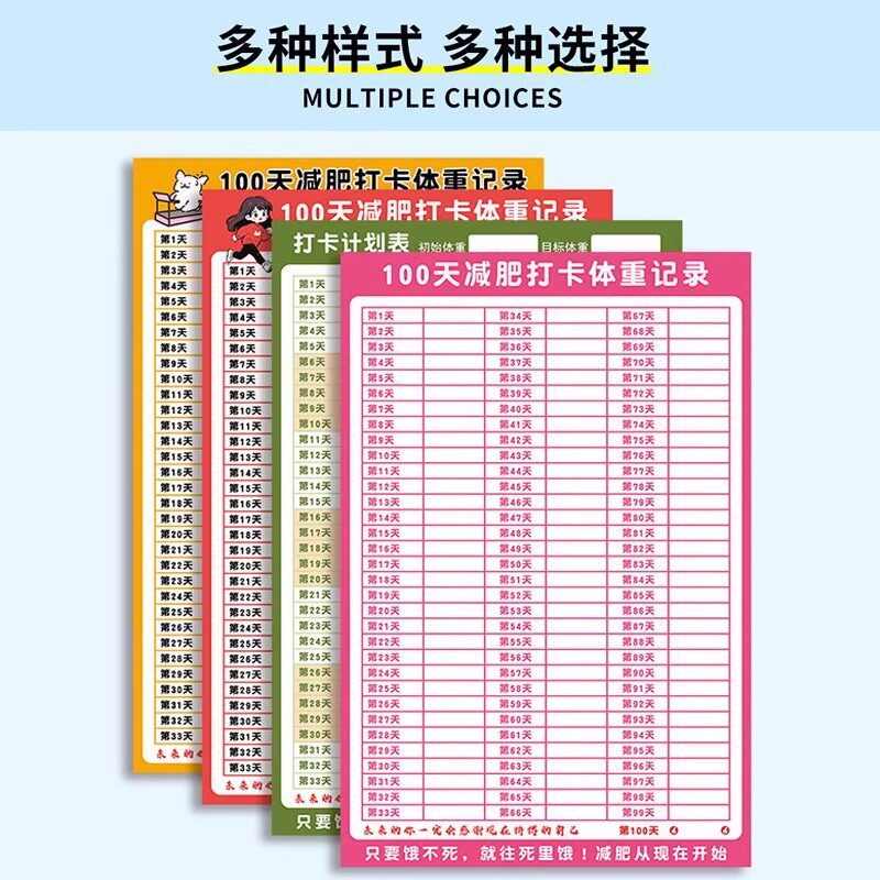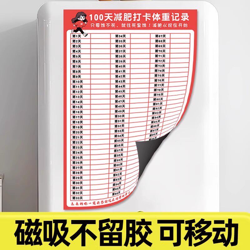 您的位置: 减肥计划表减肥打卡记录表100天体重记录表30天50天60天百日墙贴纸自律激励运动健身励志磁吸日历神器冰箱贴