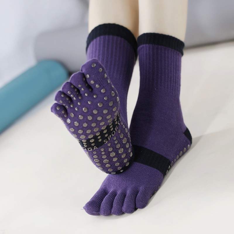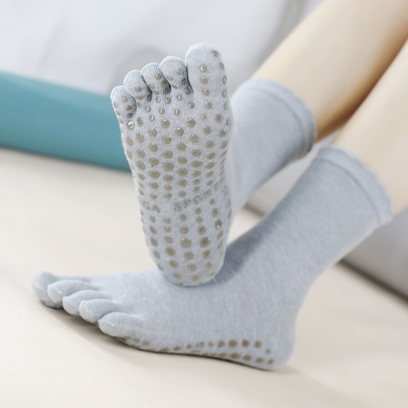您的位置: 中筒袜舞减肥舞蹈瑜伽防滑健身运动菩提拉地板五指袜子女纯棉白色