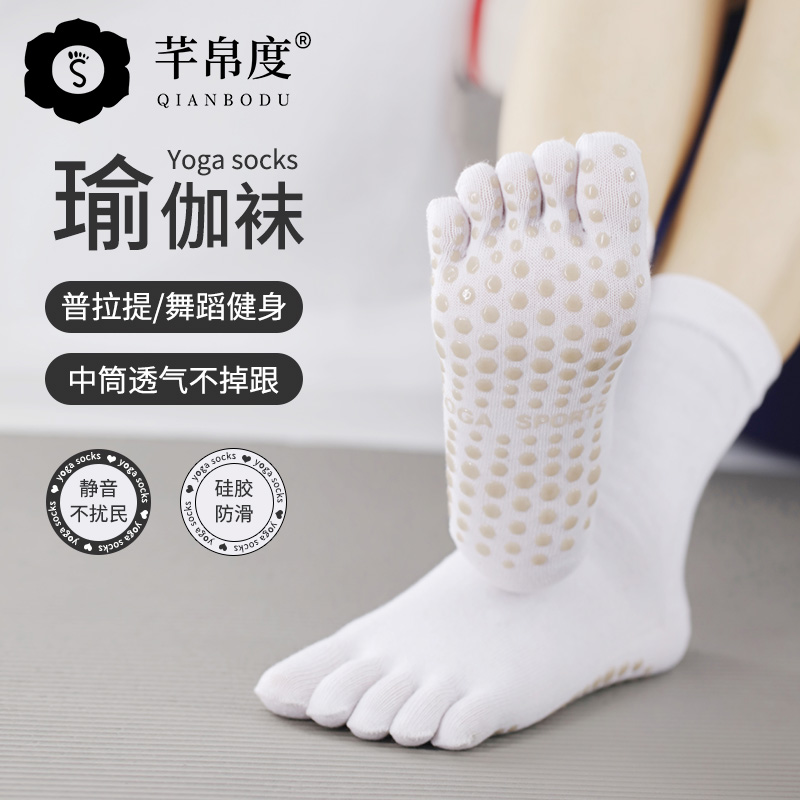 中筒袜舞减肥舞蹈瑜伽防滑健身运动菩提拉地板五指袜子女纯棉白色