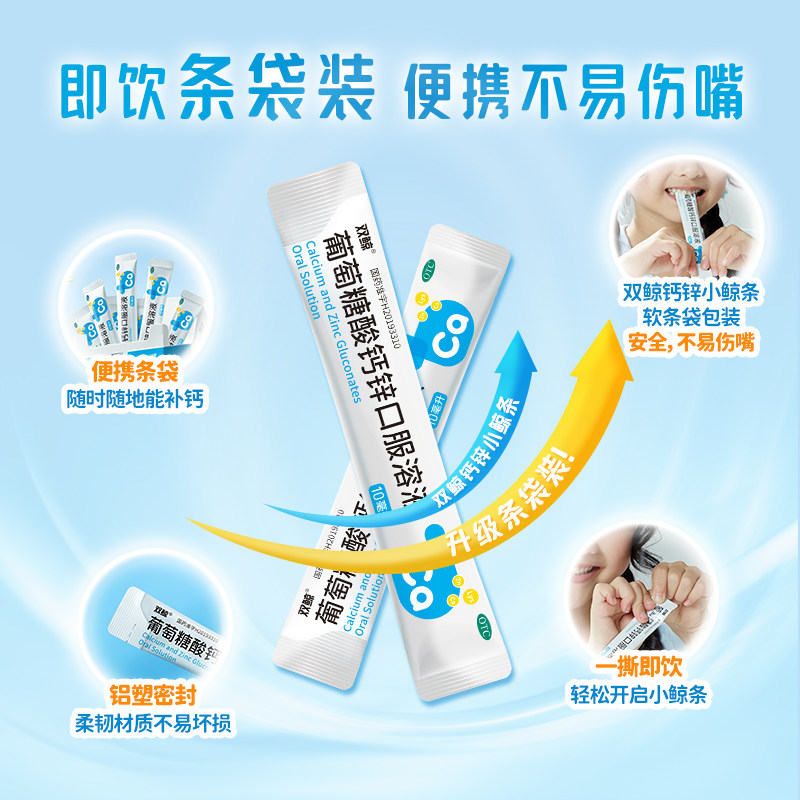拍2立减51淘金币1凑消费券36.8单袋0.76,葡萄糖酸钙锌,液体钙易吸收,成长好伴侣!成人也需补钙,双鲸来帮忙!