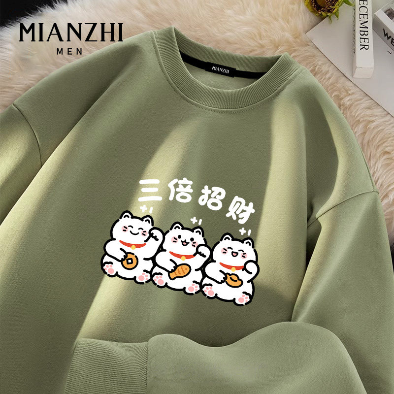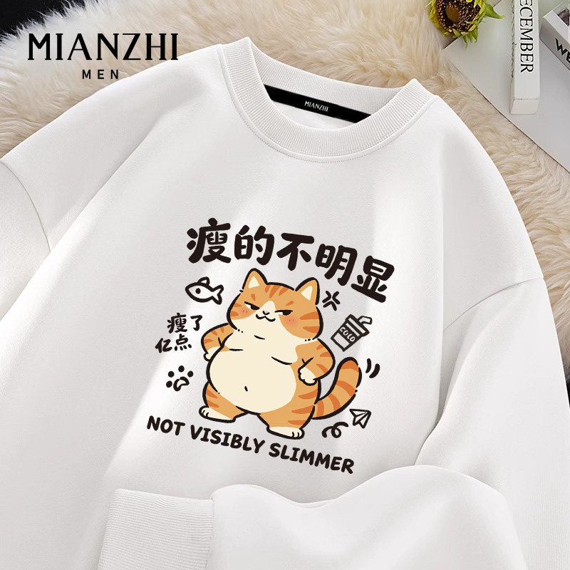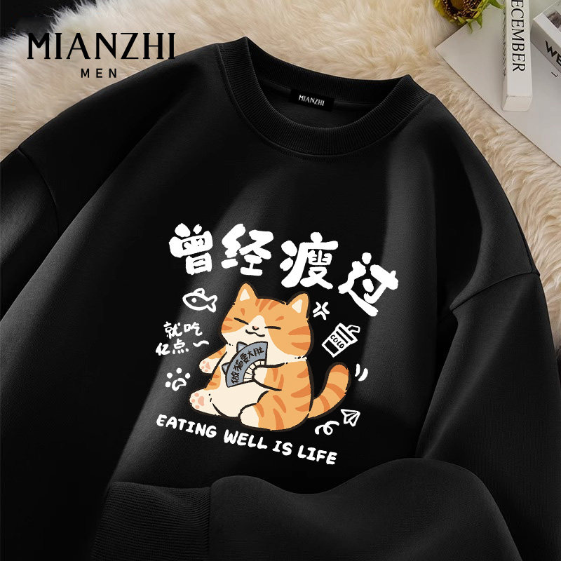 棉致减肥小猫趣味青少年新款宽松春秋卫衣套头男卡通长袖外套上衣