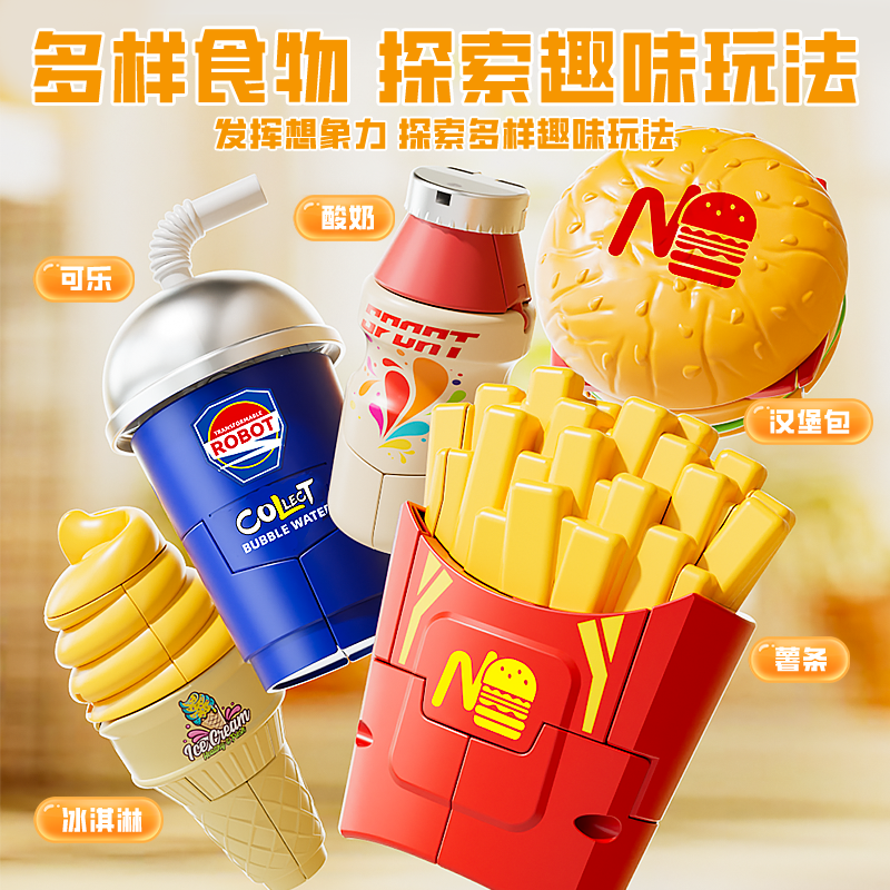 变形玩具薯条汉堡可乐模型男孩变形玩具3益智6儿童金刚机器人战士