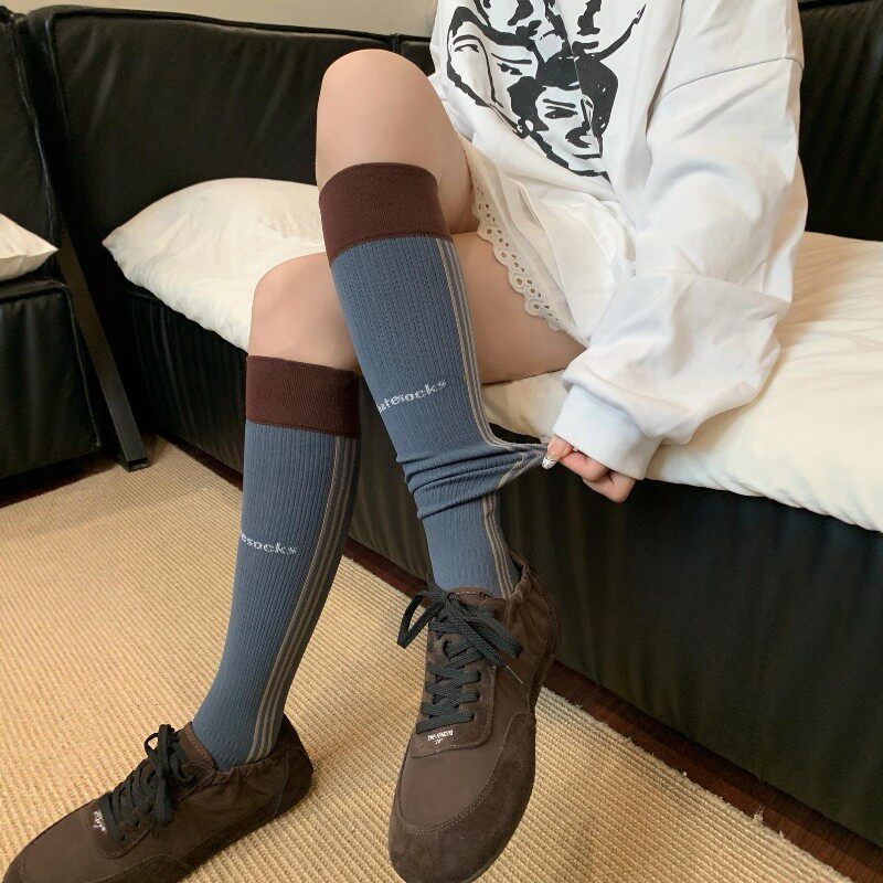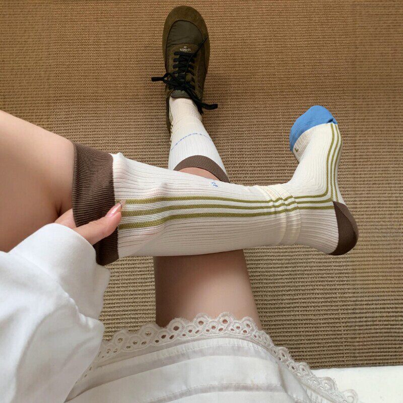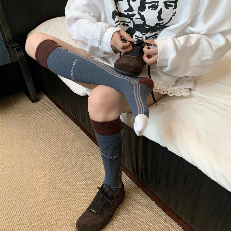 这个春天我一定会减肥成功!.防止肌肉腿~跑步压力袜美式复古蓝棕