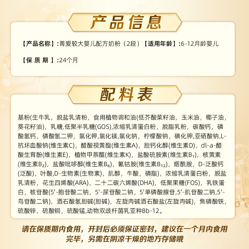 > 贝因美菁爱6-12月婴儿配方奶粉2段800g*6罐消化吸收含益生菌DHA