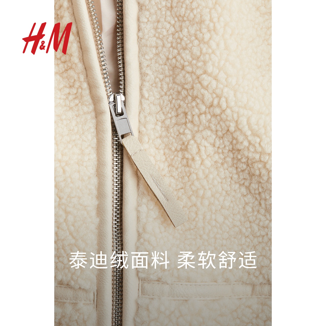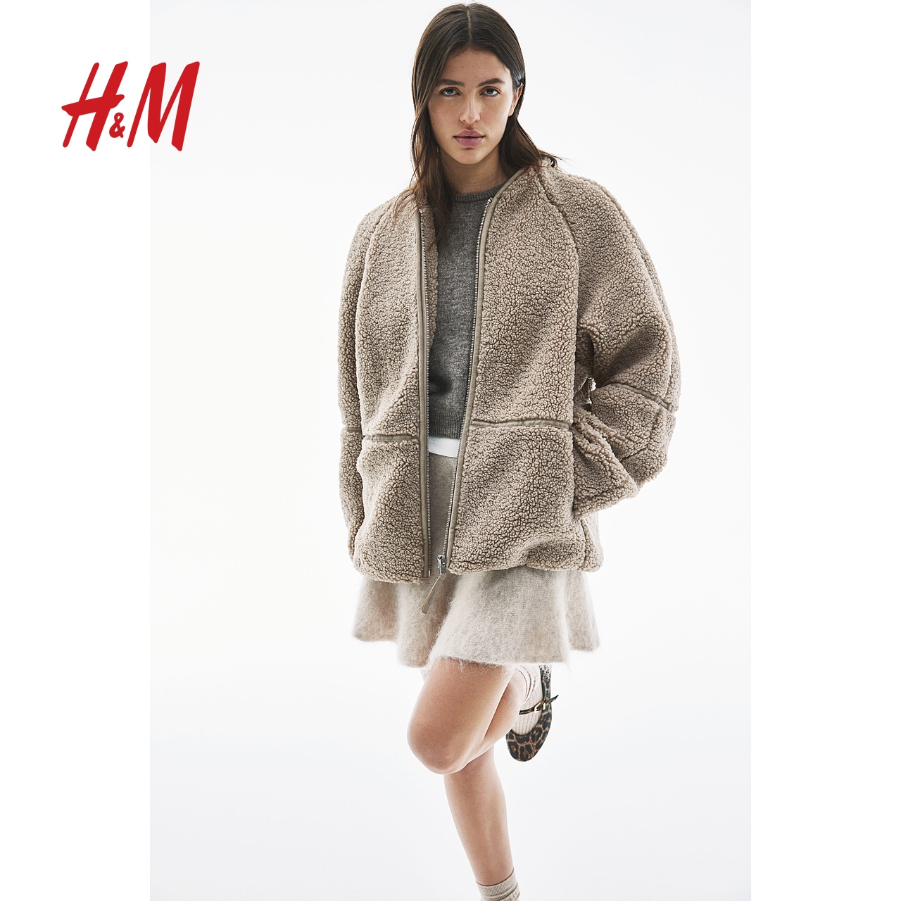 HM女装短外套冬季泰迪绒宽松版开衫V字领插肩袖绒感外套1266153