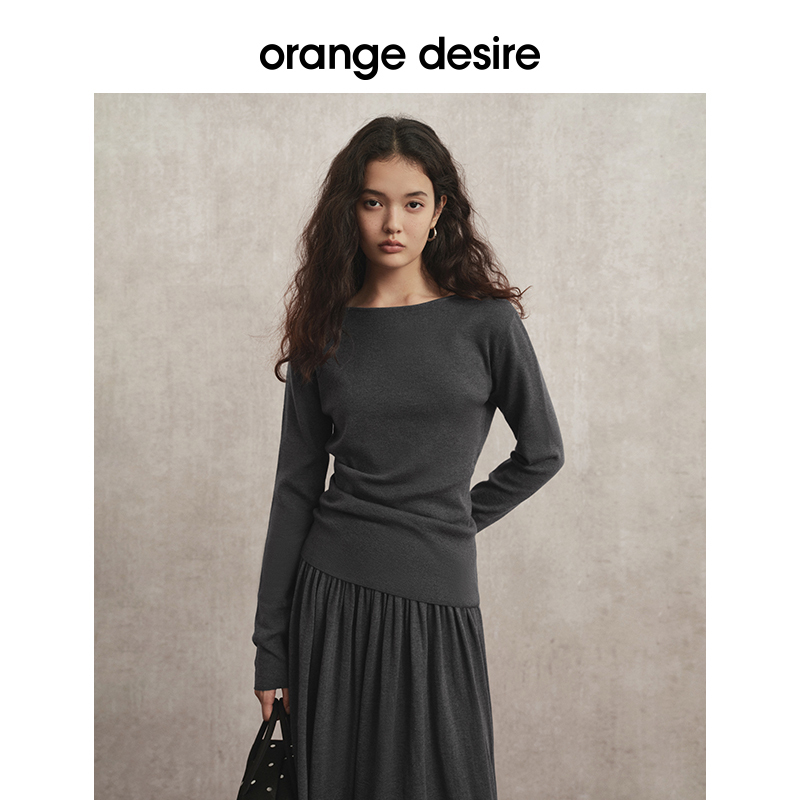 【淡人套装】orange desire一字领收褶上衣半身裙套装25冬季新款