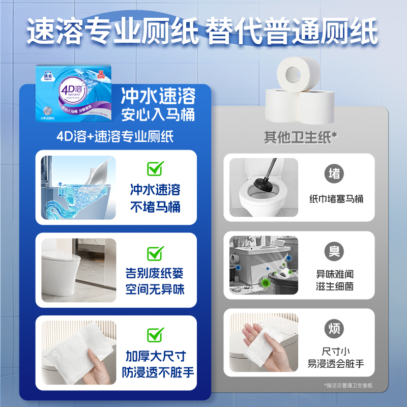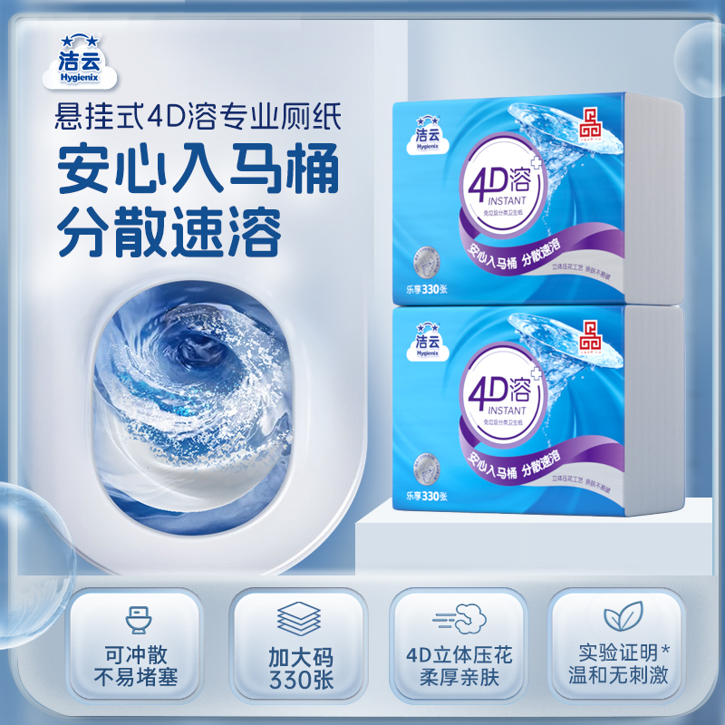 您的位置: 洁云4D溶水溶性卫生纸平板纸330张40包厕纸家用装