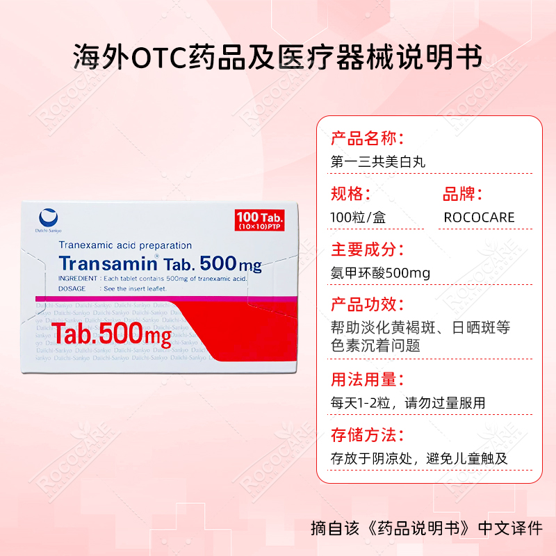 第一三共美白丸EX淡斑祛斑妥塞敏传明酸原装进口氨甲环酸片 500mg
