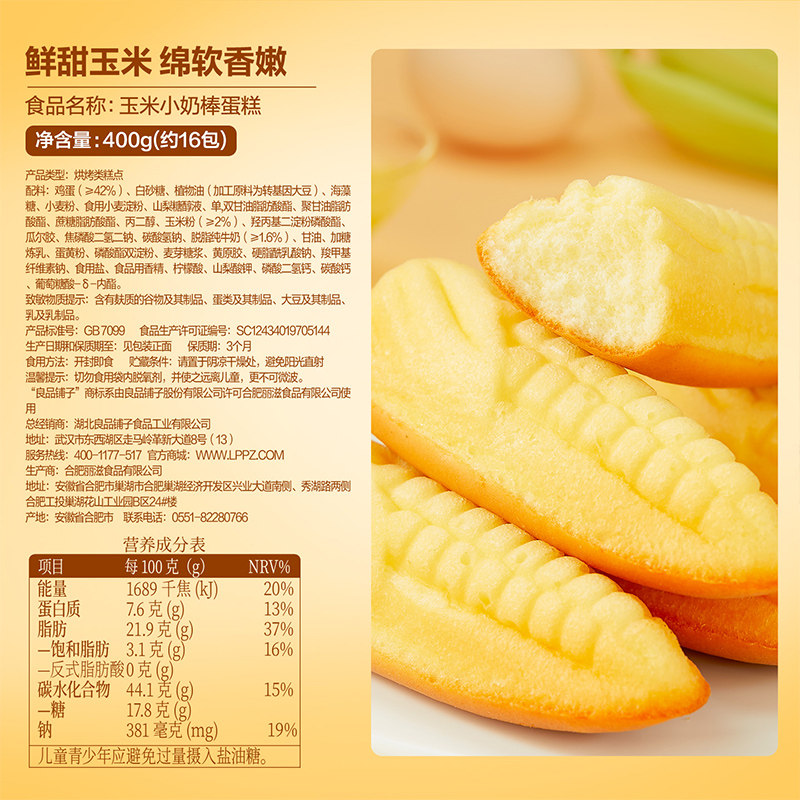 良品铺子玉米小奶棒蛋糕整箱休闲零食儿童孕妇营养代餐早餐糕点心