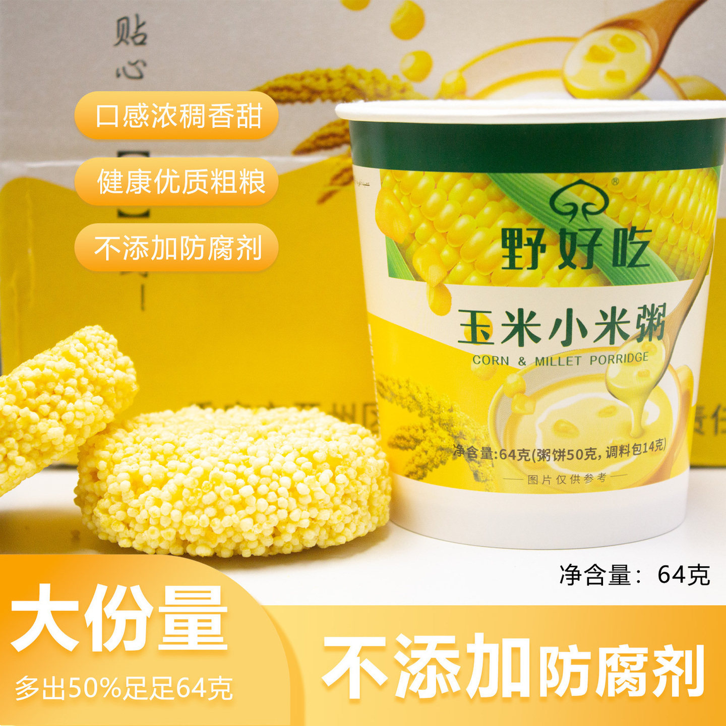 野好吃食品营养早餐粥免煮玉米小米粥速食冲泡代餐粥低脂零添加
