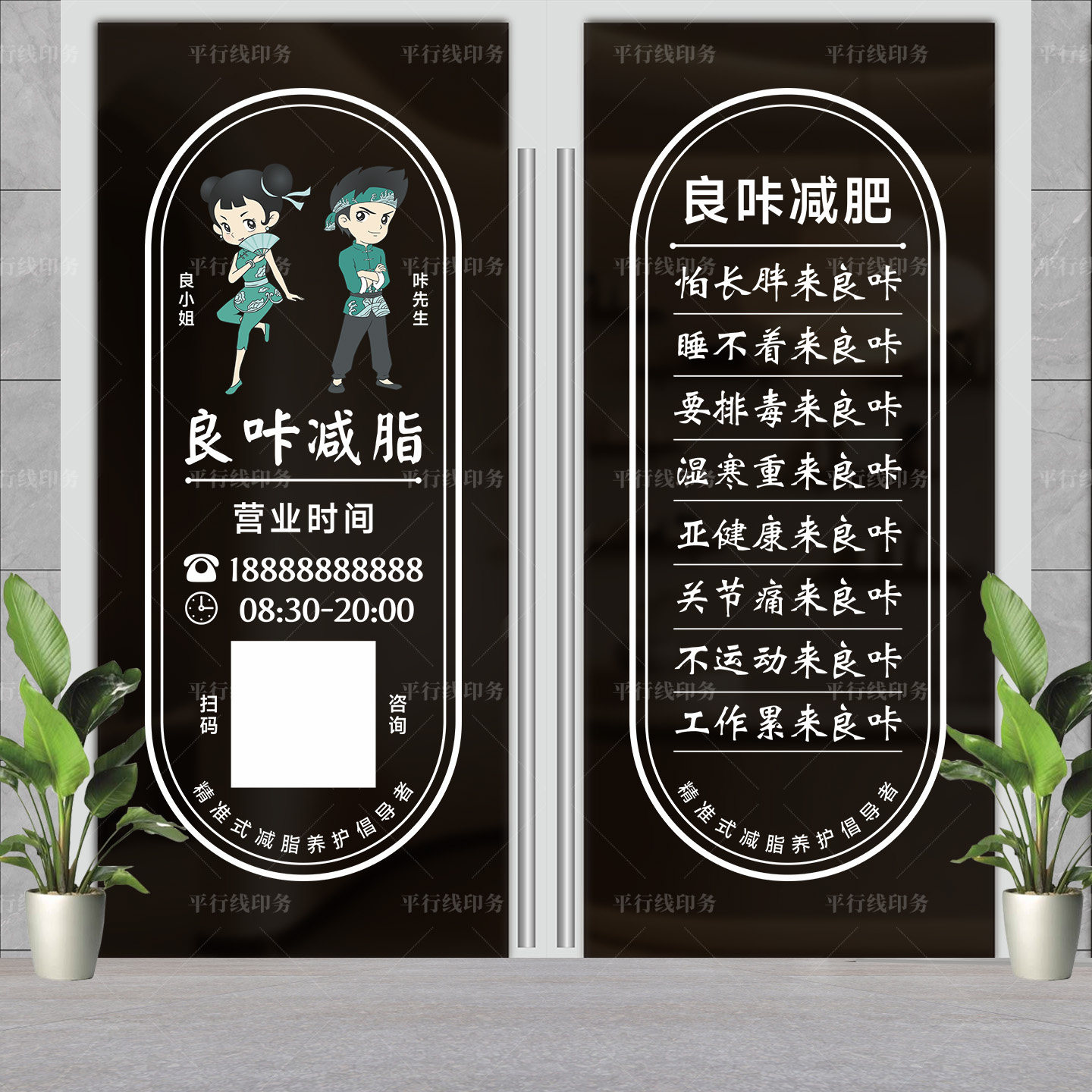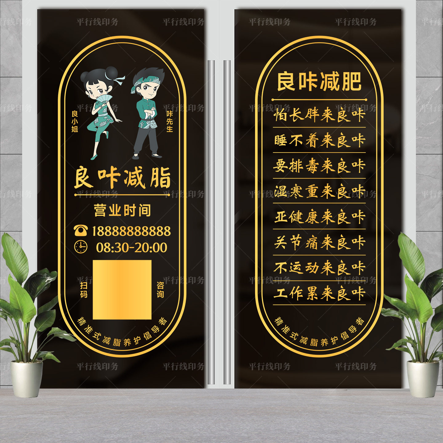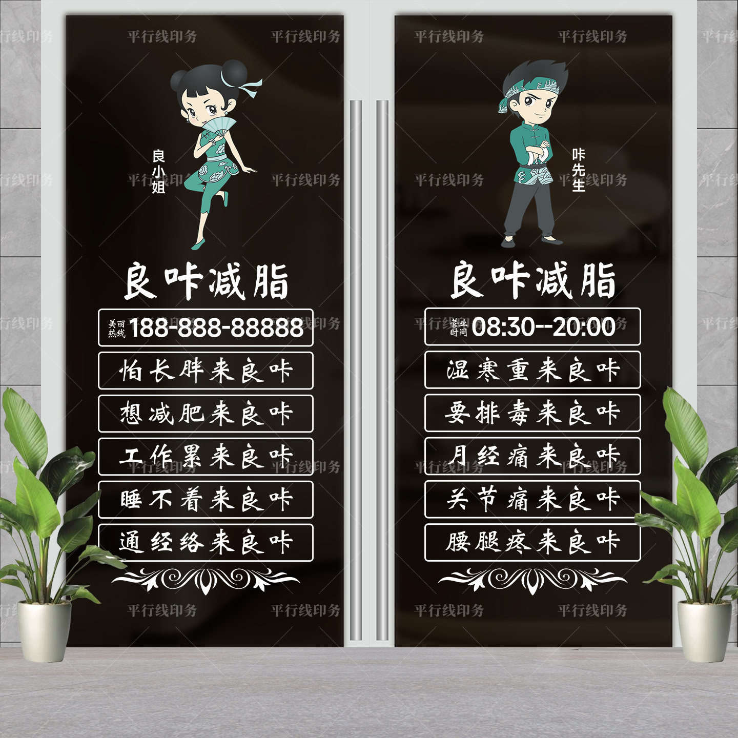 良咔玻璃贴纸美容院减肥瘦身店养生馆门贴装饰画营时间贴定制