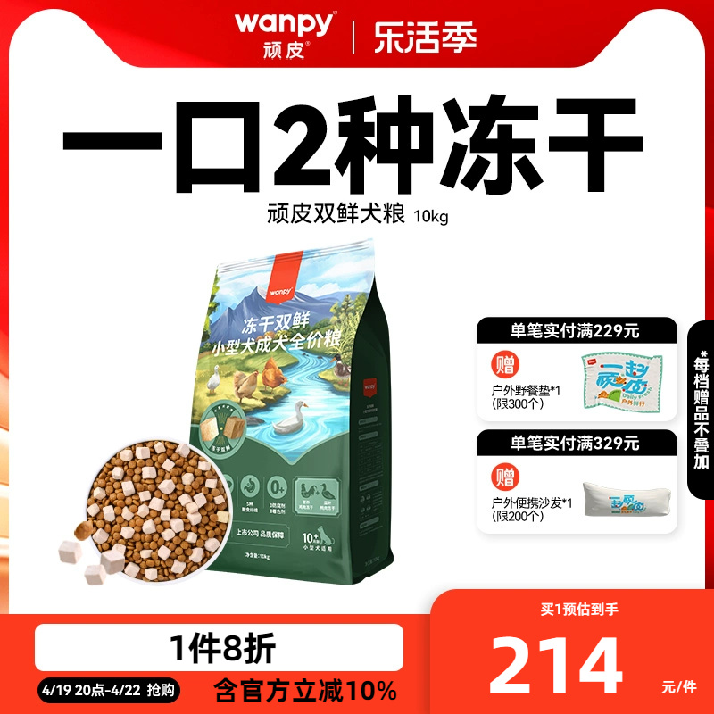 淘宝天猫Wanpy顽皮双鲜双拼冻干狗粮成犬20斤通用型泰迪比熊美毛去泪痕优惠券折扣价格–彩云间