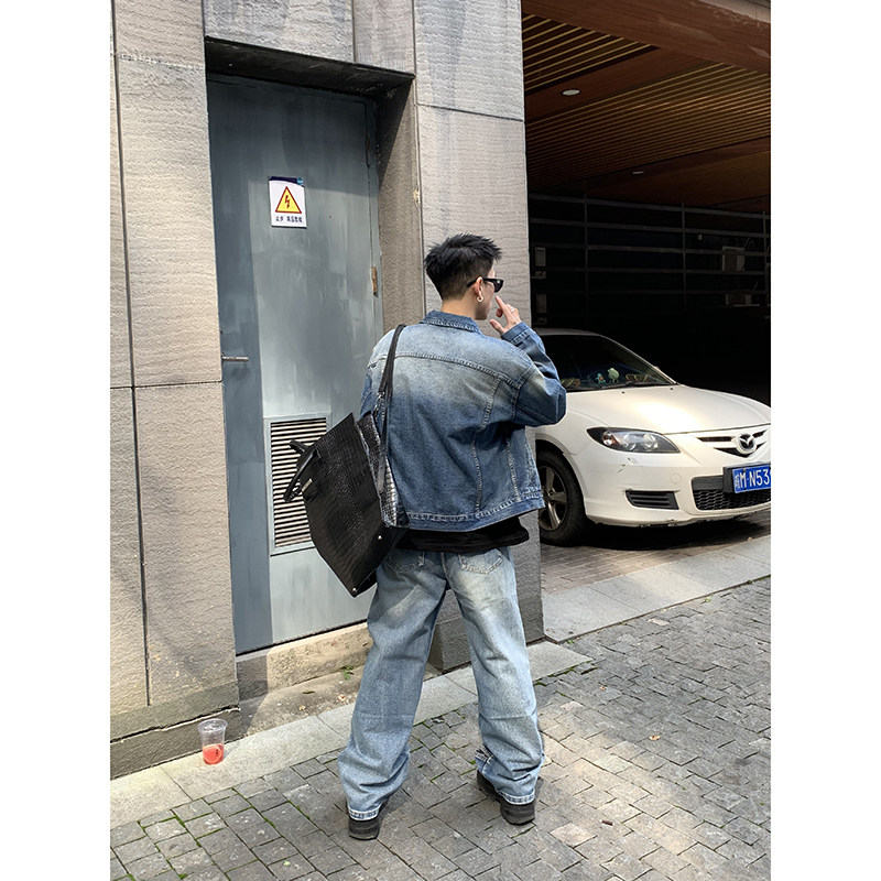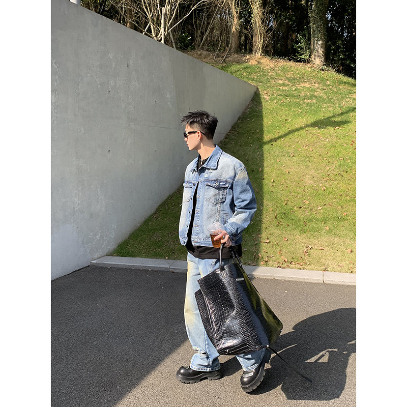 您的位置: PLTH*春季韩版牛仔水洗做旧基础宽松男夹克直筒长裤休闲通勤外套
