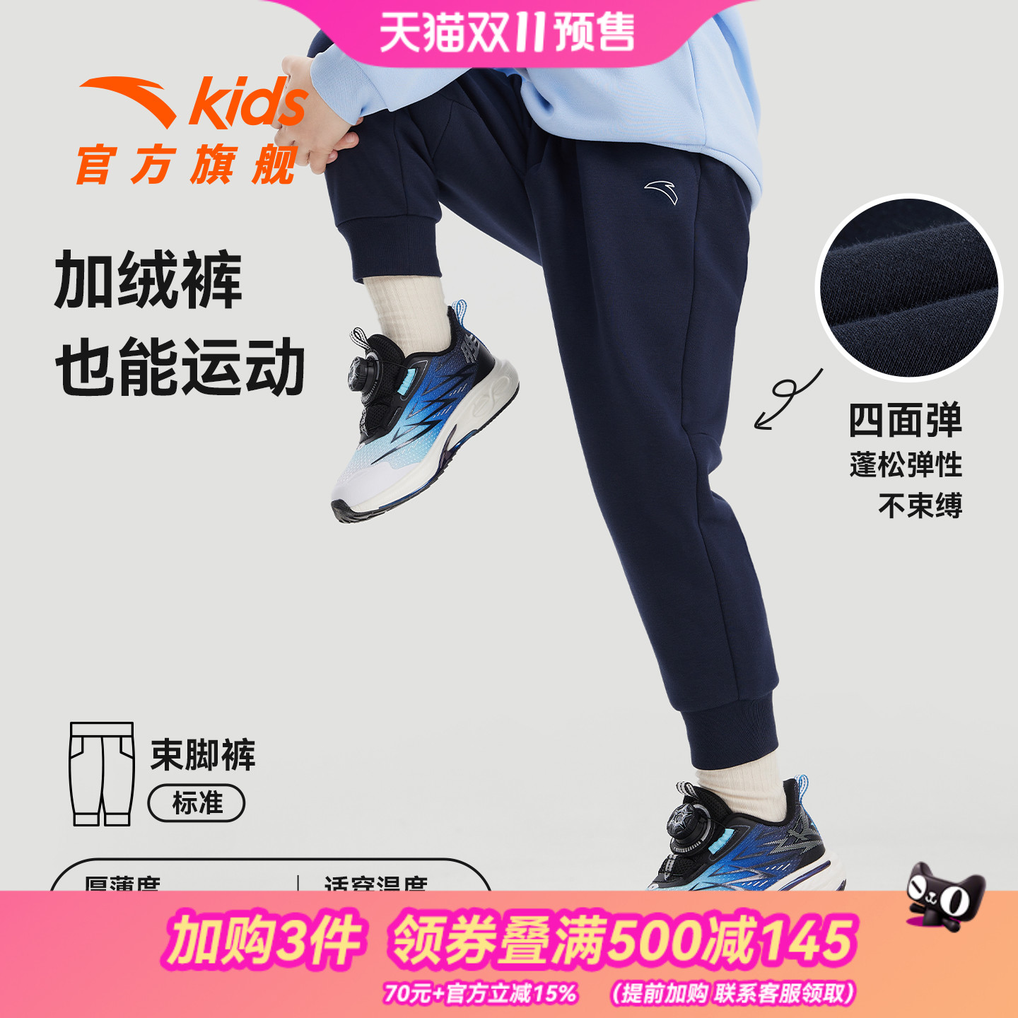 安踏儿童装男童加绒裤子一体绒秋冬款2025冬季新款卫裤长裤运动裤