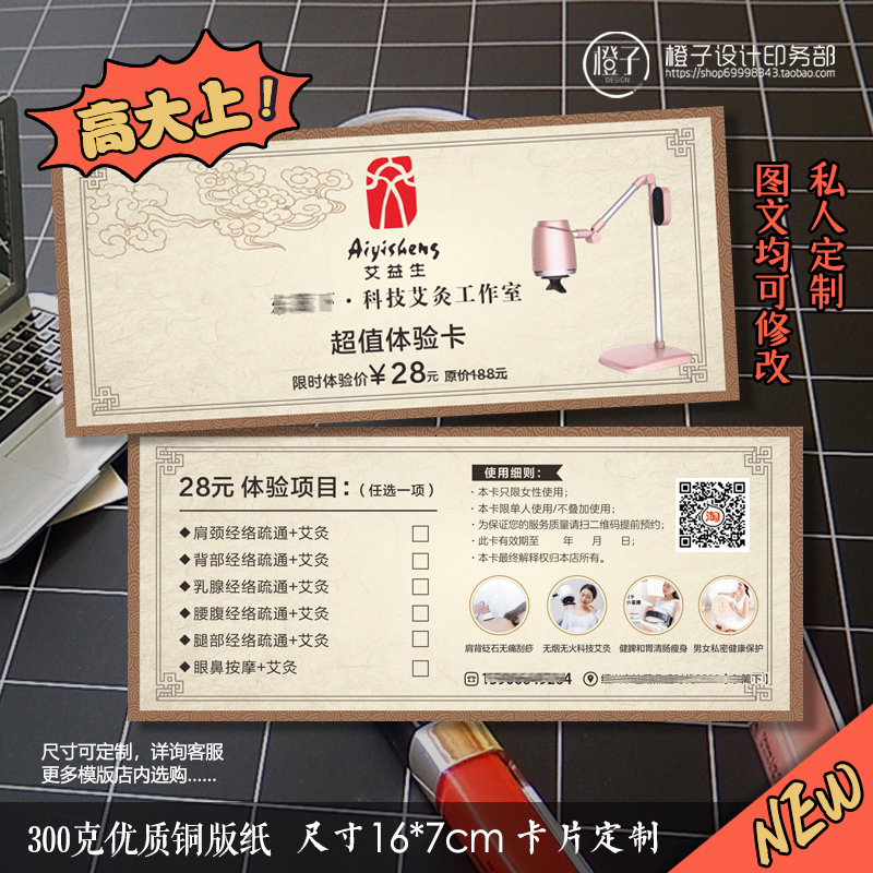 您的位置: 艾灸悬灸泥灸养生体验卡券抵用代金卷美容美体减肥健身开业拓客卡