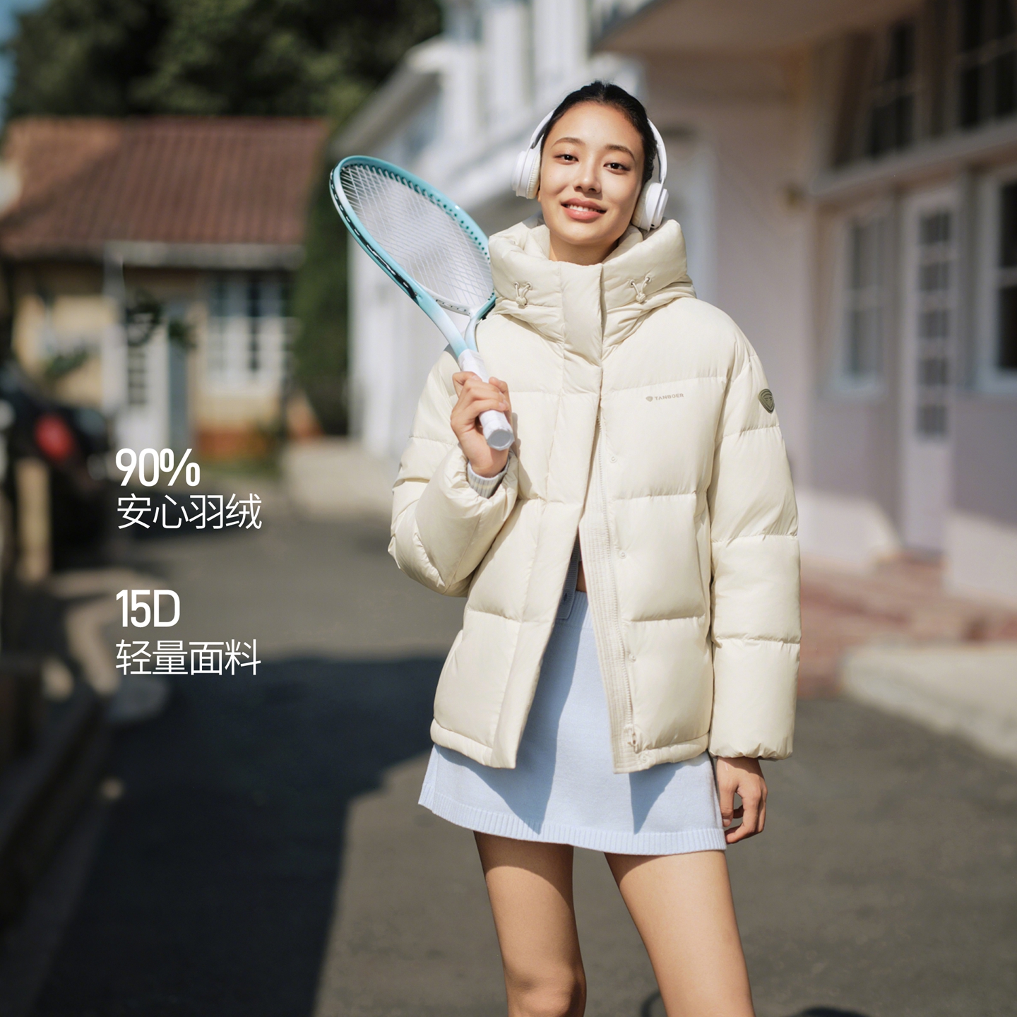 坦博尔羽绒服女款冬季2025新款短款连帽保暖时尚休闲面包服外套