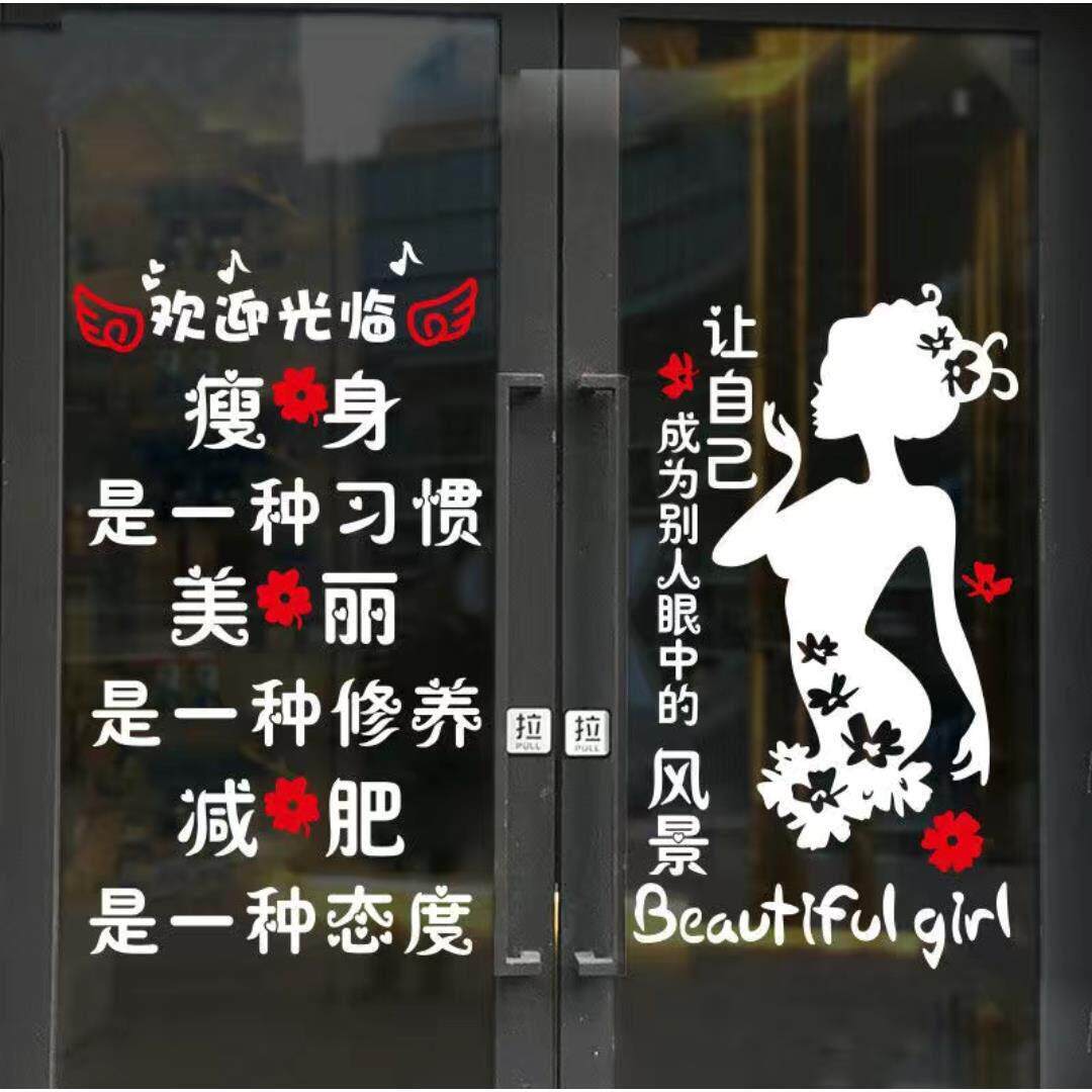 减肥广告贴纸美体励志标语玻璃门贴纸养生馆美容院橱窗装饰墙贴画