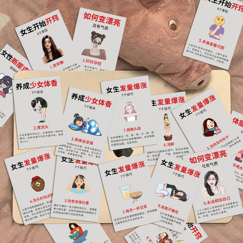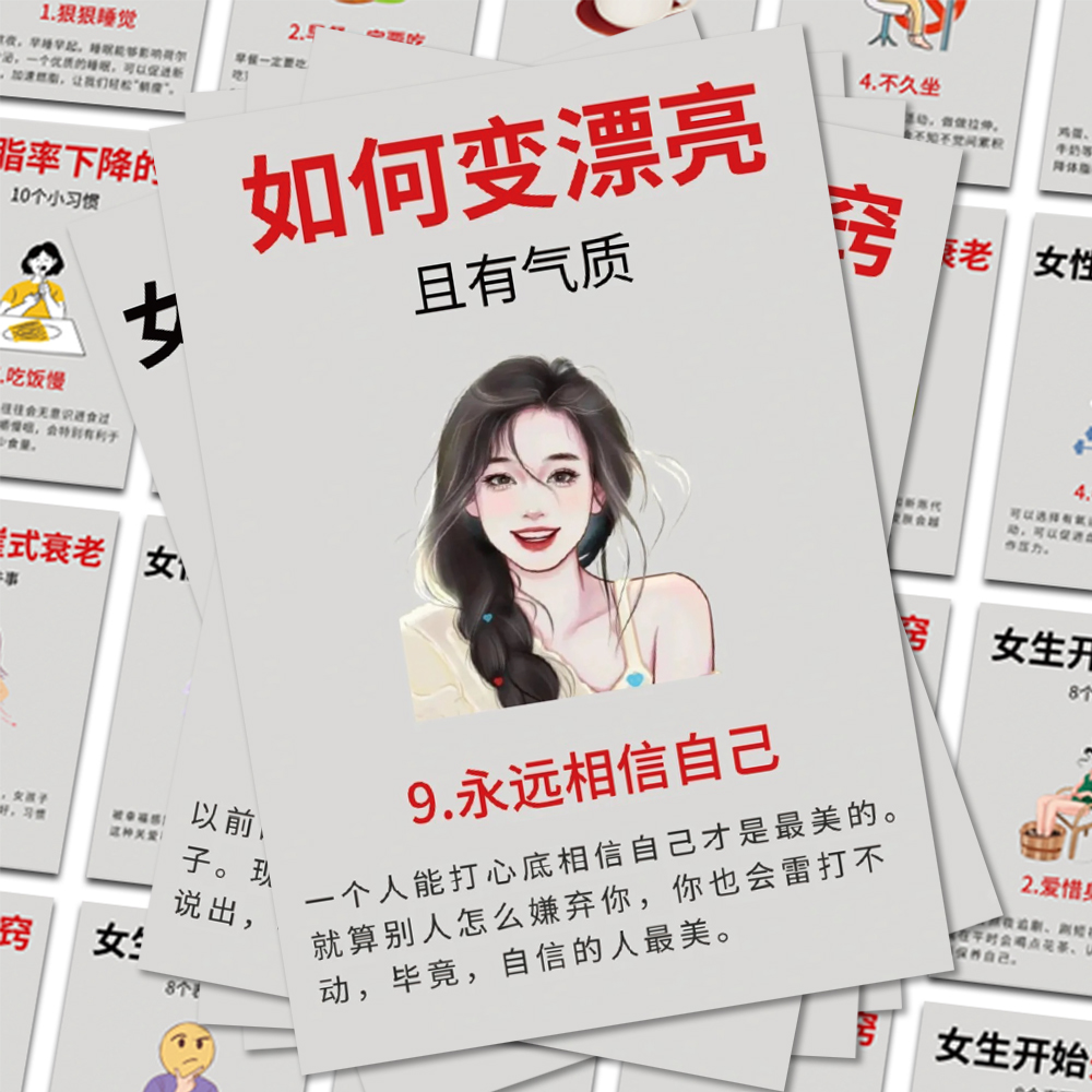 淘宝天猫82张女性变美计划贴纸减肥抗老小秘诀小众科普diy手机笔记本贴画优惠券折扣价格–彩云间