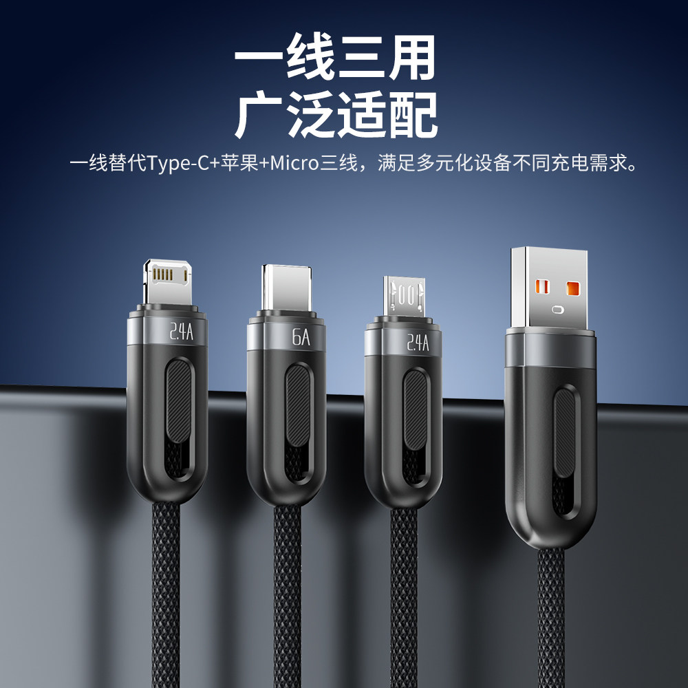您的位置: toocki图奇适用华为苹果小米数据线三合一充电线器typec三头mate60Pro快充一拖三充电线车载通用安卓手机