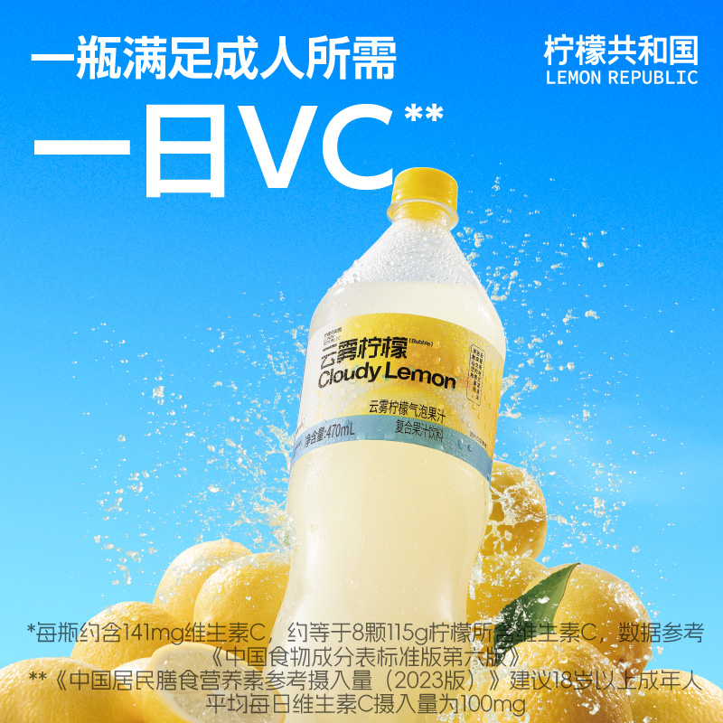 【U先】柠檬共和国云雾柠檬芭乐香水柠檬气泡水果汁饮料汽水饮品