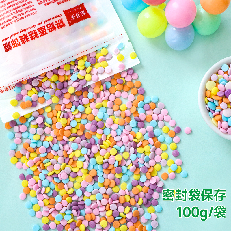 您的位置: 糖片蛋糕装饰彩色圆形切片糖珠马卡龙可食用生日纸杯甜品烘焙点缀