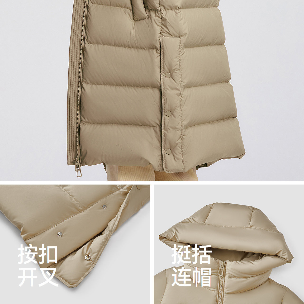 森马羽绒服女冬季长款开叉连帽90绒子防泼水厚鹅绒服显瘦保暖外套