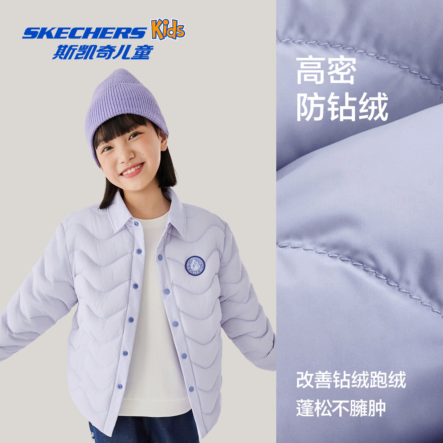 > Skechers斯凯奇童装时尚秋冬保暖羽绒服儿童梭织短款休闲鸭绒外套