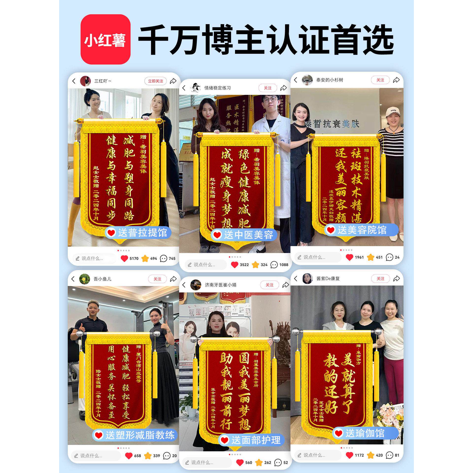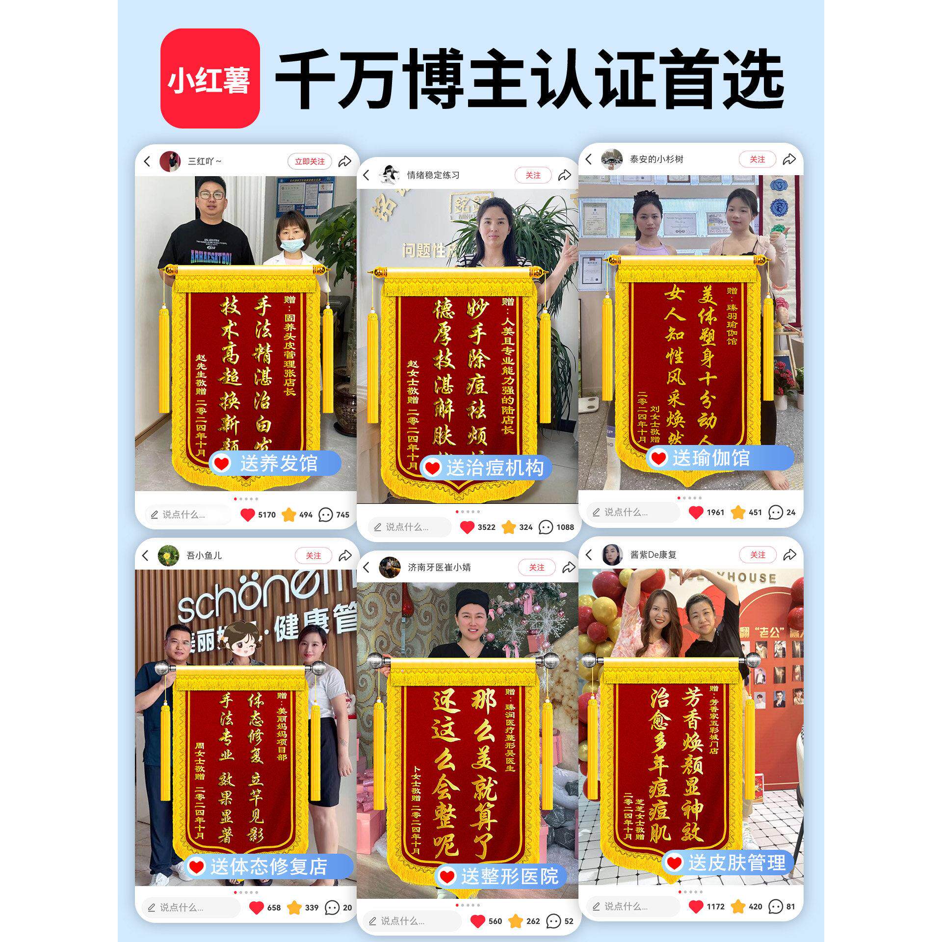 淘宝天猫锦旗定制定做送美容院感谢服务祛痘祛斑减肥瘦身理疗高档旌旗订制优惠券折扣价格–彩云间