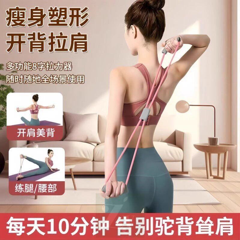 8字多功能拉力器女家用健身带瑜伽肩部拉伸器减肥运动塑身腰腹带