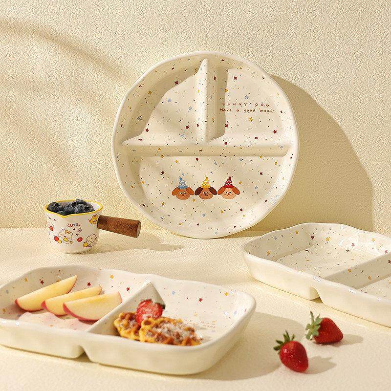 陶瓷减脂盘卡通分格盘减肥餐盘高级感家用菜盘子仪式感早餐盘餐具