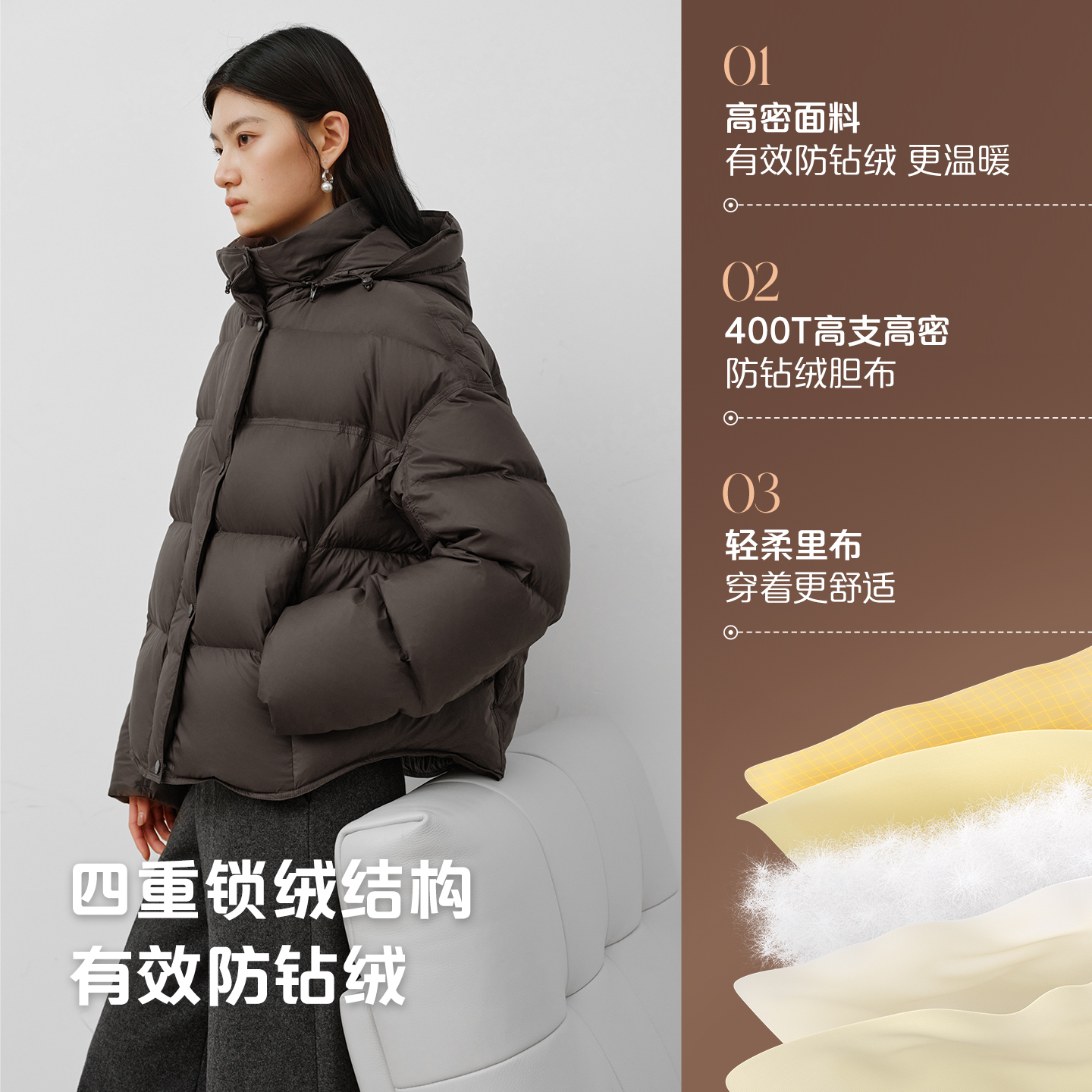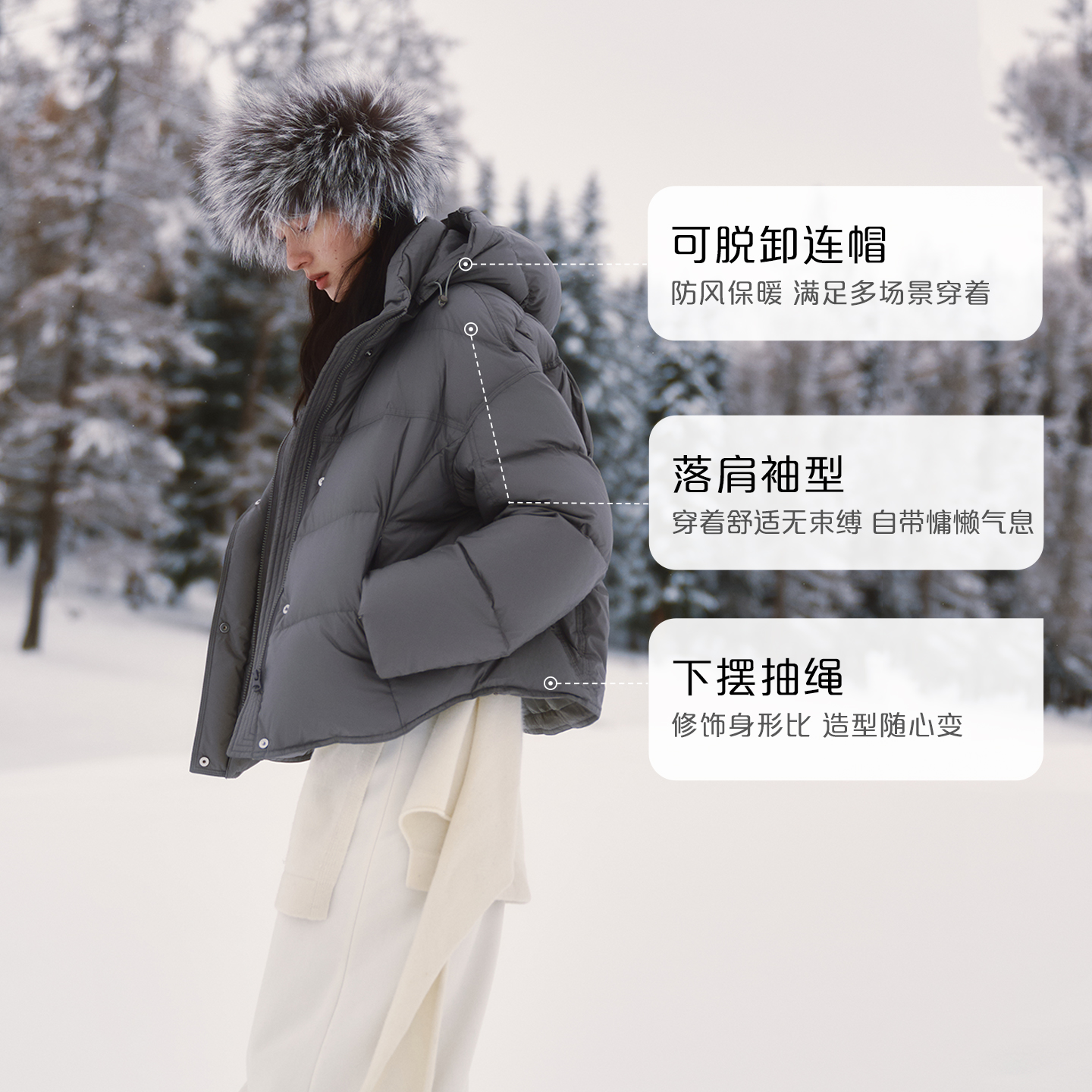 【胡可推荐】艾莱依2025新款连帽羽绒服落肩袖宽松显瘦外套