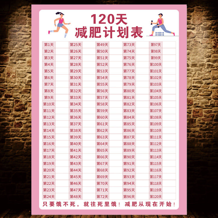 120天减肥自律计划表健身体重打卡海报墙贴瘦身重量登记表体重