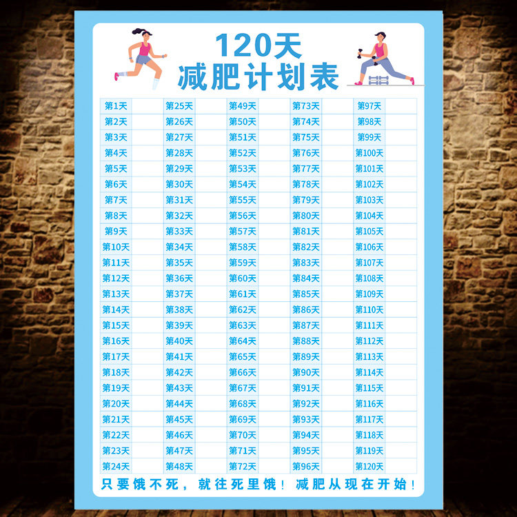 您的位置: 120天减肥自律计划表健身体重打卡海报墙贴瘦身重量登记表体重
