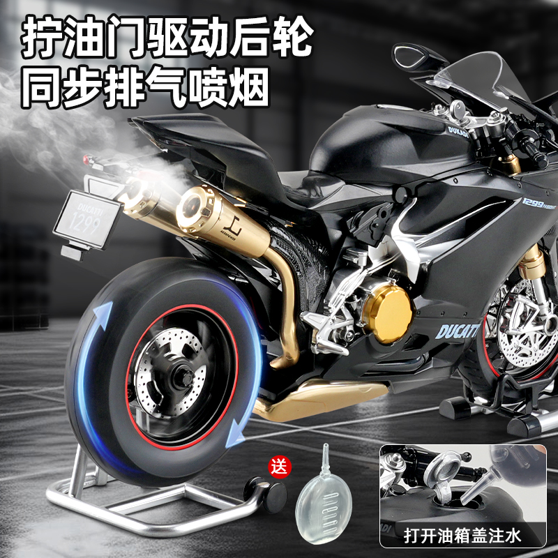 电动喷雾1:9川崎H2R摩托车模型礼盒仿真合金机车男孩礼物收藏摆件