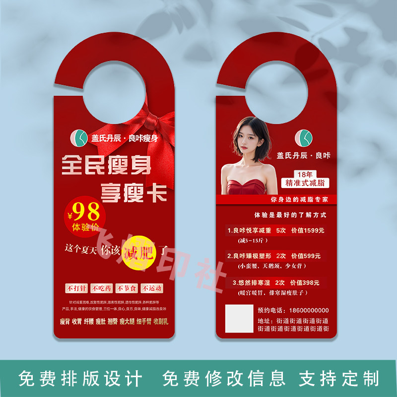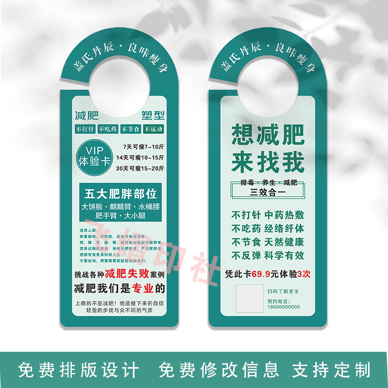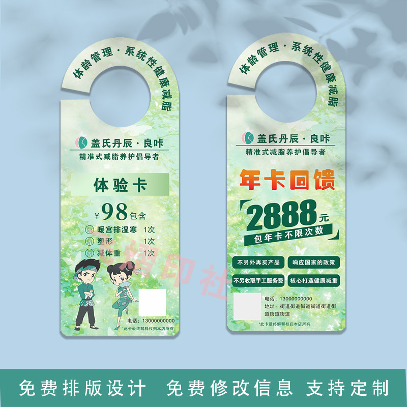 门把手车把手挂牌广告挂卡定制良咔瘦身减肥优惠券拓客体验卡印刷