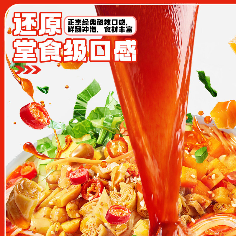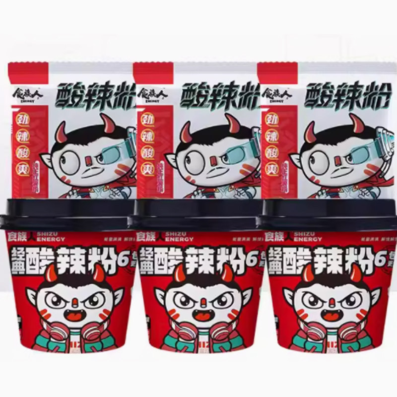 酸酸辣辣超过瘾! !一口入魂! 食族人旗舰店•桶装速食合集 21.9起,折3.65亓/桶 酸辣直冲天灵盖,一口下真的巨超开胃! 粉Q面弹料超足,解馋速食特方便!