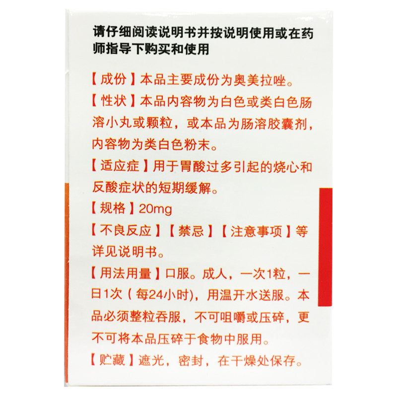 您的位置: 天晟泰丰 奥美拉唑肠溶胶囊 20mg*14粒*1瓶/盒 烧心反酸胃酸