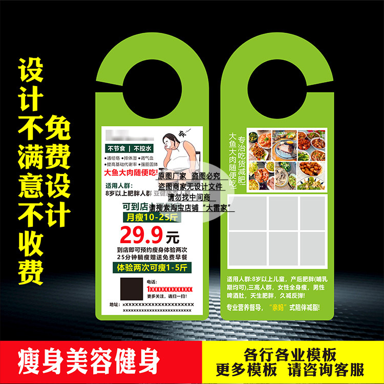 您的位置: 汉佰草纤本家减肥体验卡宣传单页带胶海报贴广告挂门把手挂卡定制