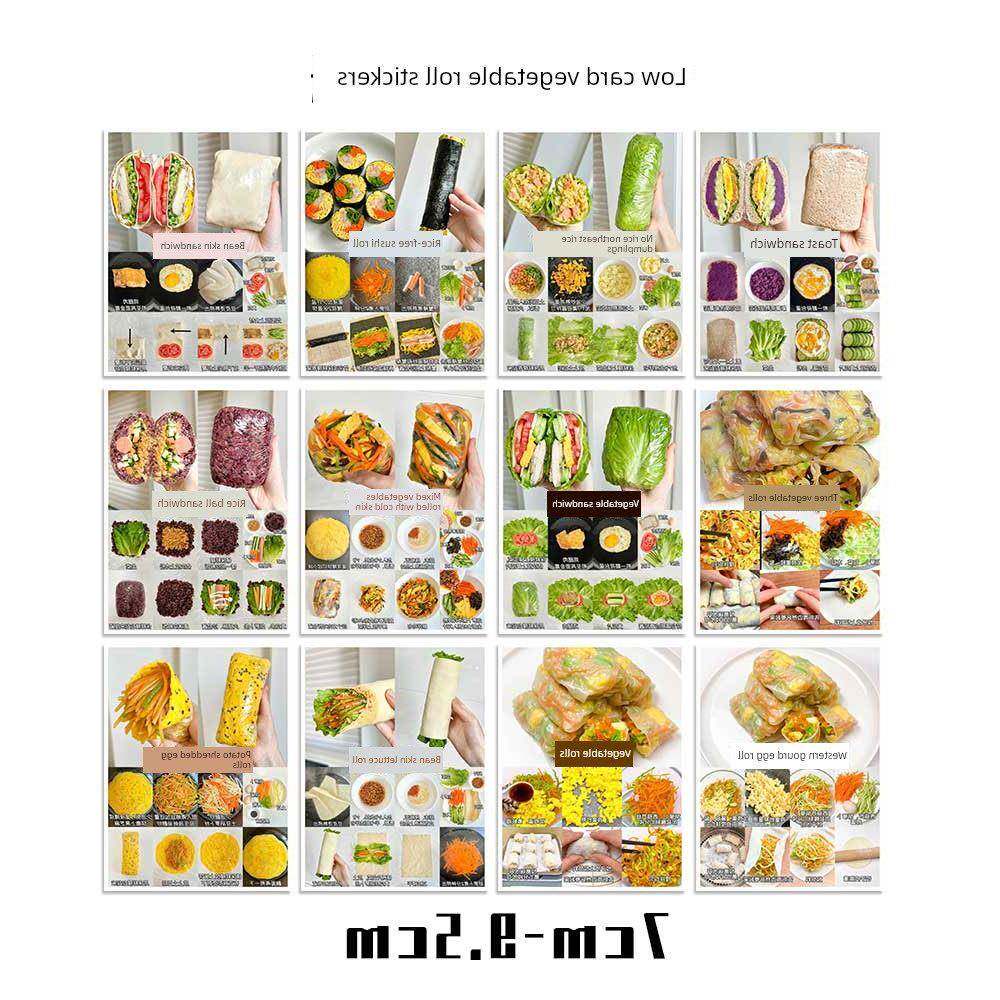 36张低卡蔬菜卷贴纸早餐制作教程美食营养减肥减脂食谱装饰手账本