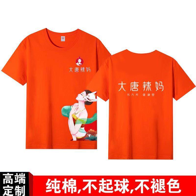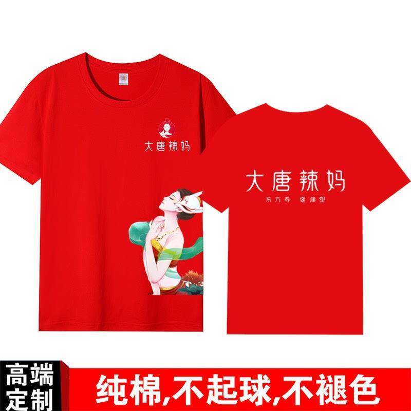 大唐辣妈短袖减肥瘦身减脂店服务员纯棉女工作服T恤男广告衫印字