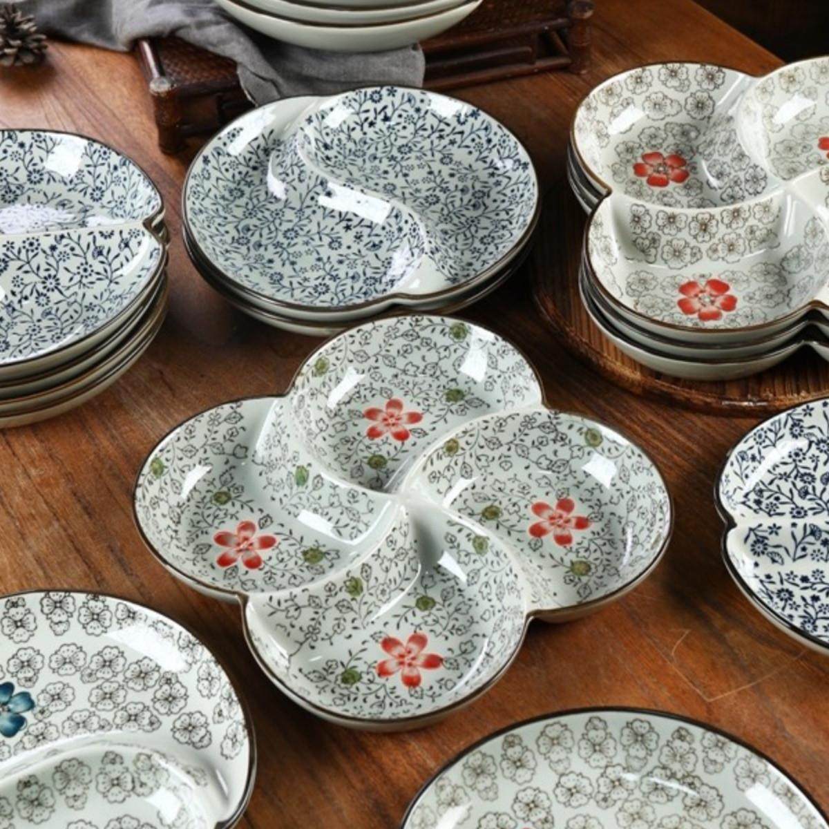 淘宝天猫分餐盘减脂餐盘分格 陶瓷家用盘子菜盘早餐三格创意餐具分隔减肥优惠券折扣价格–彩云间